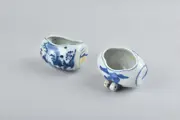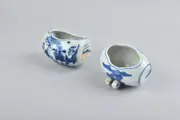 Twee Chinese blauw-witte vogelvoeders - Scholar objects