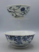 2.) Afmeting 5,5 x 11,6x 10,7cm, bakfoutjes, klein chipje, scheef en niet perfect rond, zie foto's.