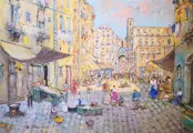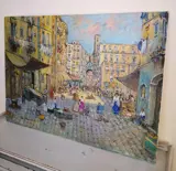 Prachtige olieverf op doek van 50 x 70, van de meester Ugo Mascolo (Napolitaanse schilder van nationaal en internationaal niveau) die een karakteristieke hoek van Napels uitbeeldt met veel personages en scènes uit het Napolitaanse volksleven.