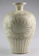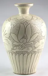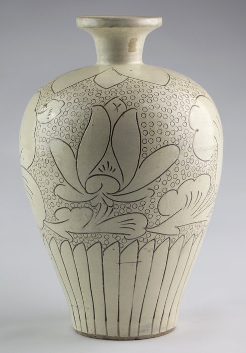 Grote Chinese 20e eeuws steengoed Cizhou Sgraffito ingesneden lotus design vaas.