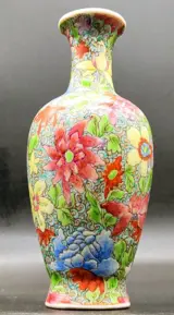 Een antieke prachtige authentieke millefiori vaas, fantastische smaakvolle decoratie met een gouden achtergrond en buitengewoon prachtige handgemaakte bloemen! Uit een prachtige Italiaanse privé collectie.