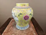 Vaas (1) - Porselein - Yellow ground (Famille Rose) - China - Tweede helft 20e eeuw