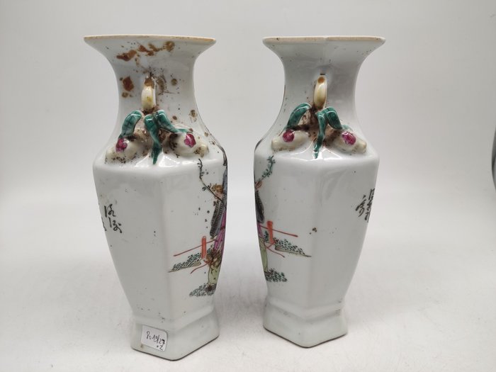 Vaas (2) - Familie rose - Porselein - karakters - China - 20e eeuw