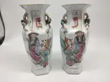 paar famille rose porseleinen vazen gedecoreerd met karakters