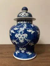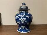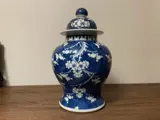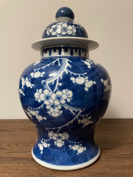 Zeer zeldzame en grote Chinese blauw-wit porseleinen vaas met origineel deksel, Er staan vier karakters op de bodem!