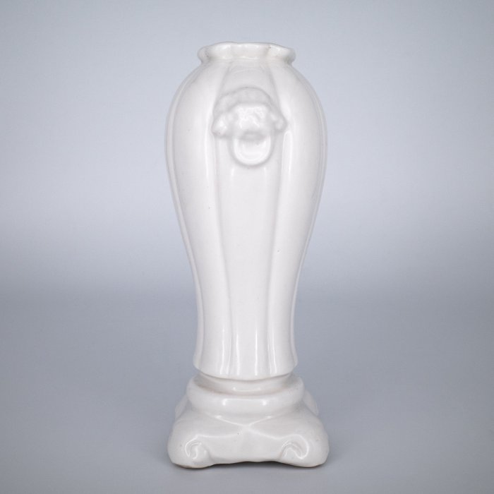 Charmant miniatuur Chinees Dehua Blanc de Chine vaasje met foo leeuw handvatten. Uitstekende staat volgens foto's. Alle donkere gebieden zijn slechts reflecties op het oppervlak van het porselein.