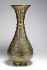 Syrische vaas in verguld koper versierd met kalligrafie en bloemen rond 1900