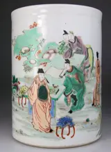 Prachtige famille verte porseleinen penseelpotvaas - late Qing-periode tot republiekperiode begin 20e eeuw.
