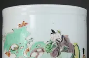 Schitterende Brush Pot-vaas in famille verte-porselein - Late Qing a Republic: begin 20e eeuw