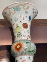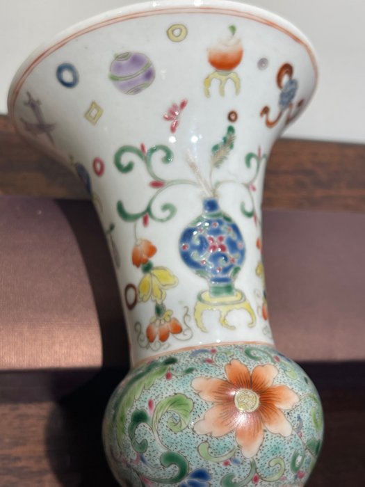 Pastelkleurige vaas uit de Qing-dynastie. De fles is beschilderd met veelbelovende ontwerpen. Goede staat, geen beschadigingen, scheurlijn, (heel klein groen glazuur eraf, zichtbaar op de foto) onderkant Chinese stijl: "Yang He Tang System"