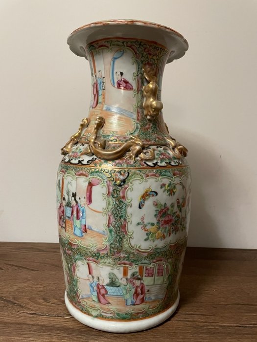 Zeer mooie en grote Chinese kantonporseleinen vaas uit 19e eeuw!
