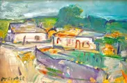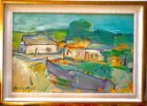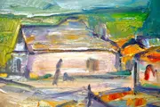 Oost-Europese school (XX), Murivale - Vasile Muresan (Roemeens, 1957), "Dorpslandschap", olieverf op doek. Gesigneerd in groen, linksonder, gesigneerd en getiteld en gestempeld met kunstenaarsstempel op de achterkant. Het werk is in uitstekende staat bewaard gebleven en is ingelijst in een zeer goed bewaard gebleven lijst.