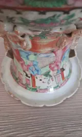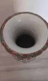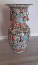 Zeer mooie porseleinen vaas met prachtige voorstellingen. Hij is gebruikt maar verkeert nog in goede staat. Er zijn geen scheuren of haartjes, het heeft gewoon de slijtage van de tijd wat het des te meer cachet geeft.