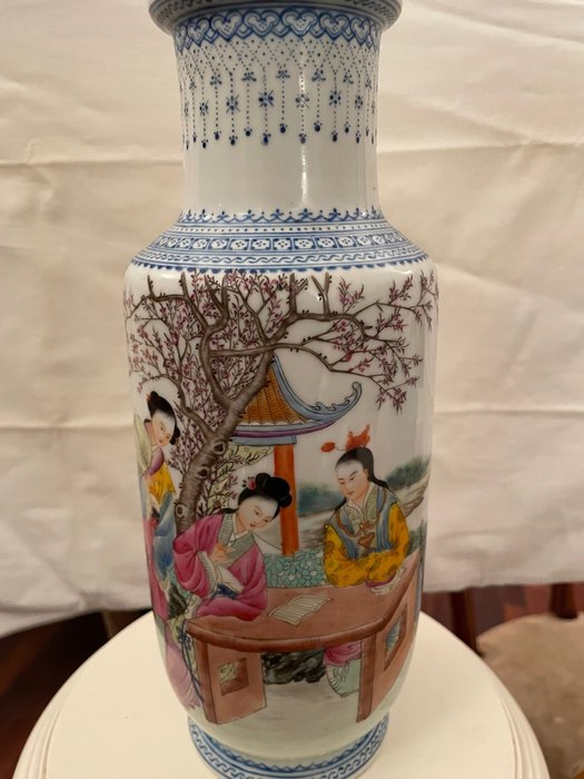 Twee beschilderde Chinese vazen. 30 cm x 12 cm.