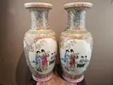 Vazen (2) - Porselein - Ladies in the garden (Famille Rose) - China - Midden 20e eeuw