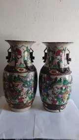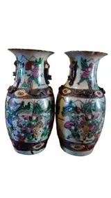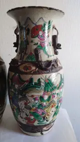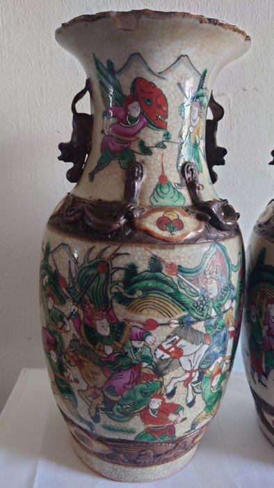 Gebarsten porseleinen vazen versierd met ruiters die vechten tegen draken en Fo-honden