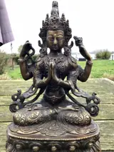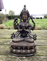 Deze vierarmige Boeddha van brons is afkomstig uit Tibet/Nepal.
