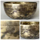 Op de klankschaal zijn de symbolen en spreuken van de volle maan gegraveerd