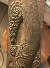 Please check the old repair as can be seen on the pictures (straight under the Tiki face)