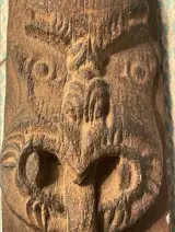 This is a large terracotta cast Maori Poupou meeting house panel.