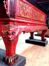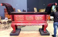 China, 19e eeuw: indrukwekkende gouden en gelakte offertafel, H: 179 x L: 301.