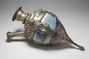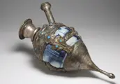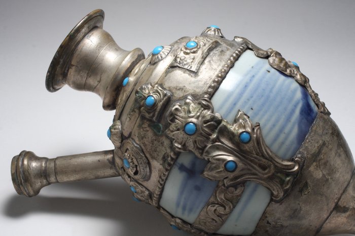 waterpijp basis - Metaal, 18e eeuws Chinees keramiek en kralen - Iran, Afganistan - Eerste helft 20e eeuw