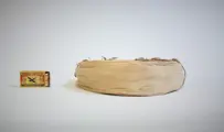 De doos met lucifers werd afgebeeld om de grootte van het stuk te illustreren.