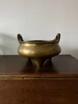 An 18th/19th century tripod Chinese bronze censer. Marked with a four-character Xuande mark. It is a beautiful larger and heavy bronze incense burner.