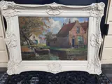 Mooi olieverf op linnenschilderij. Schilderij in goede orde lijst gebruikssporen.