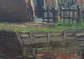 Willem Horselenberg (Rotterdam 1881 - Zeist 1961). Willem Horselenberg werd geboren in 1881 en woonde en werkte het grootste deel van zijn leven in Rotterdam. De stad met zijn levendige binnenhavens en drukbevaren Maas was voor de schilder een voortdurende bron van inspiratie. Behalve stads- en havengezichten schilderde hij ook landschappen, verstilde riviergezichten met schepen en stillevens in de hem typerende vlotte impressionistische stijl.