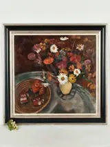 Zeldzaam bloemstilleven van Paerels. Zijn bloem stillevens zijn het meest gewilde. Paerels schilderde dit werk in de jaren 30. Op de achterkant is ook door zijn vrouw bevestigd dat het om een werk van Willem Paerels gaat. Tevensis het doek op de achterkant gestempeld met zijn atelierstempel.