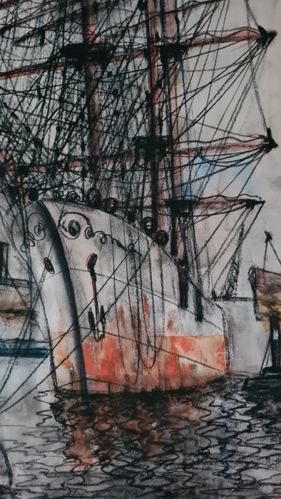 Groot werk in een gemengde techniek van Krijt, Houtskool, op papier.