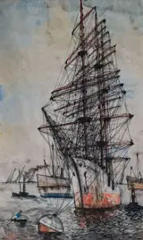 Het merendeel van de werken van Wim Bosillustreren de zeescheepvaart en de haven van Rotterdam. De kunstenaar Wim Bos woonde en werkte o.a. in Rotterdam, Brussel, Antwerpen en Parijs. Wim Bos ontwikkelde hierbij een eigen impressionistische stijl.