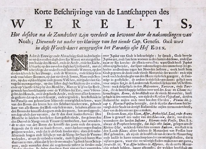 Afmetingen - afdruk: 45 x 30,4 cm. Verso-zijde: 'Korte Beschrijvinge van de Lantschappen des WERELTS;[…]'