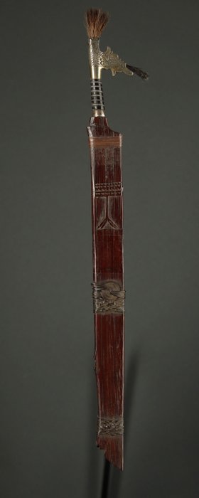 Zwaard (4) - Herten gewei, Hout, Zilver - Mandau - Dayak - Kalimantan, Indonesië