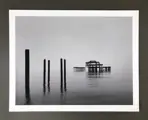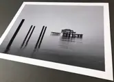 Een minimalistische, ongebruikelijke en tijdloze (chromogene) print van museumkwaliteit van de ruïnes van de oude pier van Brighton, uitgebracht in een zeer kleine oplage van 20. Dit is print nummer 7 van 20.