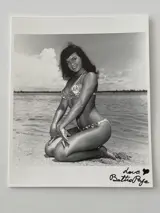 Het is ook belangrijk om te weten dat Bunny Yeager oorspronkelijk kopieën van haar foto's maakte op dubbeldik katoenen bariumpapier. Er zijn verkopers die exemplaren op fijn fotopapier verkopen, deze exemplaren komen NIET rechtstreeks van de foto, wees voorzichtig.