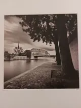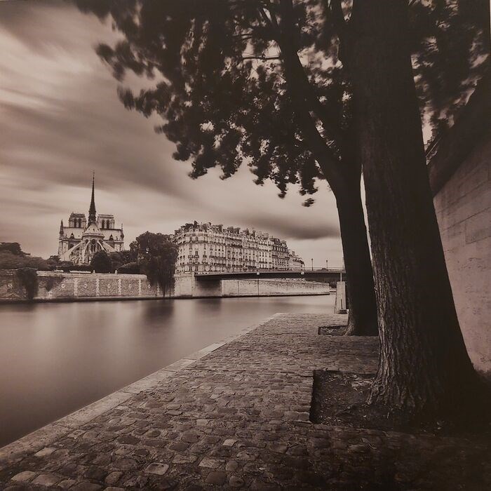 Zeldzame en prachtige print van Damien Vassart die het Île de la Cité voorstelt, een emblematische plek in Parijs, uitverkocht en zeer zeldzaam op de markt.