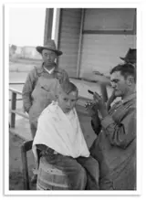 Gemeenschapskapperszaak in migrantenkamp Kern County door een van de meest iconische en invloedrijke fonografen van de 20e eeuw - Dorothea Lange