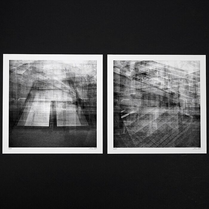 Dit zijn analoge opnamen met meervoudige belichting. Ze tonen fragmenten van de 'Meisterhäuser' van de Bauhaus-kunstenaars in Dessau.