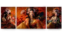 "Japanse tuin DS0198" - groot drieluik - Set van 3 prenten