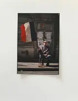 Stempel van de fotograaf op een label aan de achterzijde
