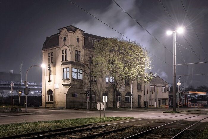 Deze nachtopname (zeer lange belichtingstijd) is gemaakt in Duisburg, Duitsland, en maakt deel uit van een serie genaamd "Aantekeningen uit de roestgordel" over het Duitse Ruhrgebied. Deze serie is getoond in verschillende kunsttentoonstellingen, waaronder bij McKinsey & Company, Inc. in München en in het Light House Media Centre in Wolverhampton, UK.
