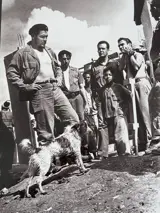 Iconische foto van Osvaldo Salas met Ché Guevara die vrijwilligerswerk doet bij de bouw van scholen in Cuba, 1961.