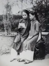 Eerste foto) Twee jonge vrouwen Annam (Hue)