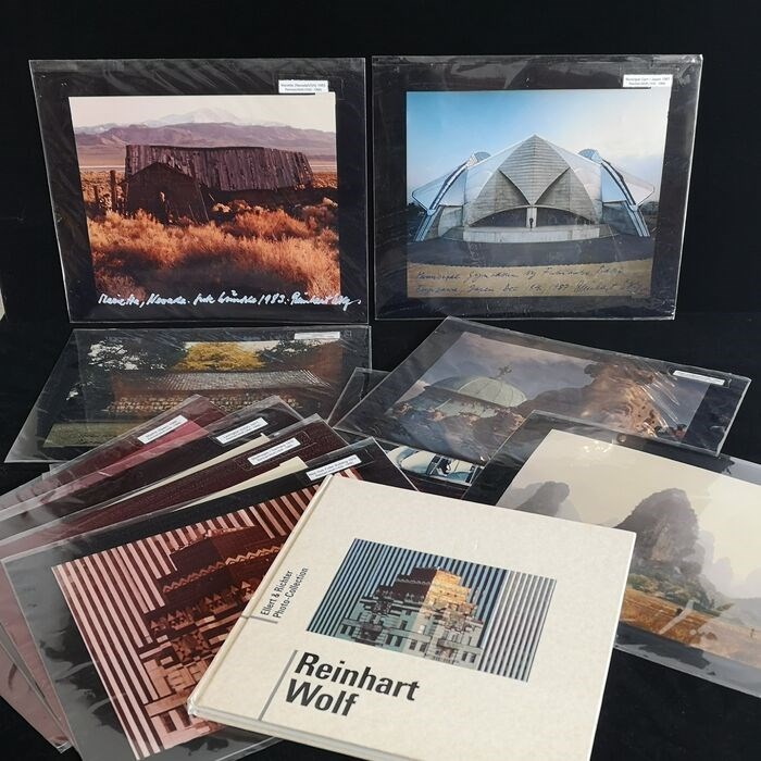 Verzameling van 11 originele foto's van Reinhart Wolf van verschillende locaties over de hele wereld en fotoboek van retrospectief werk van de kunstenaar. De 10 foto's zijn getiteld en gedateerd op de beschermhoes, en sommige zijn gedateerd en ondertekend door de kunstenaar in pen en stift