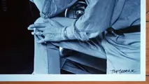 Zwart-wit afdruk gesigneerd door de kunstenaar op de afbeelding in zwarte inkt.