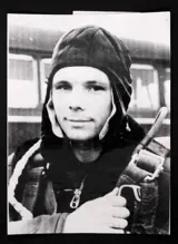 Iconische foto van de eerste man in de ruimte, de Russische kosmonaut Yuri Gagarin, 1961.