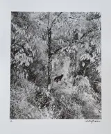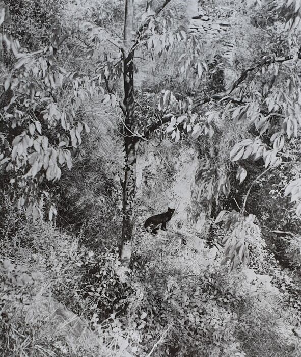 "Zomer 1951 in Gordes (Vaucluse). Ik kwam terug van een verkenningswandeling op de heuvel voor ons huis. Beweging deed de kat op de vlucht slaan. De camera hing onder mijn arm. Getriggerd door giswerk, zonder iets van de instellingen. Daaropvolgende sprong van het dier van de camera. Ik controleer: de vorige foto was op een vergelijkbare afstand genomen: dat is prima. De koppelsnelheid en het diafragma zorgen voor een zekere overbelichting: niet ernstig. Blijft de kadrering: totale onzekerheid. Ik richtte, het apparaat met de heup, als een machinepistool (geen ervaring met het machinepistool). De ontwikkeling, in Parijs de volgende maand, stelde me gerust. Het is moeilijk om te schieten, maar je kunt het: het bewijs! Lichte laterale cropping ."