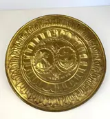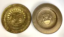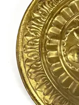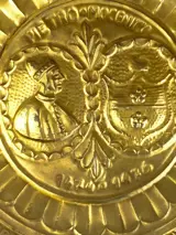 Paar antieke aalmoezeniers in reliëf en versierd metaal.